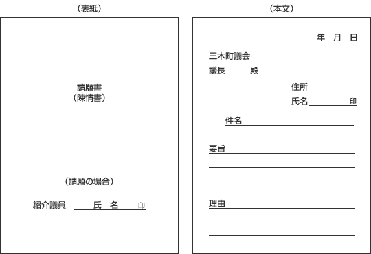 町政について要望があるときは、どなたでも「請願書」又は「陳情書」を町議会に提出することができます。