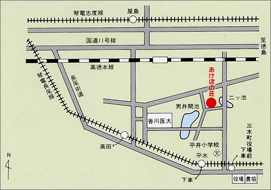 電車/ことでん長尾線で平木駅下車し約3km北方へ