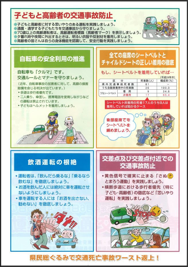 > 平成25年4月6日から15日は春の全国交通安全運動期間です。