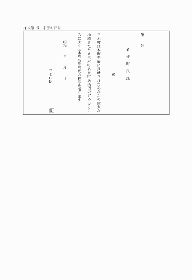 第1条 この規則は、三木町名誉町民条例(昭和55年三木町条例第24号。以下「条例」という。)第6条の規定に基づき、条例の施行について必要な事項を定めることを目的とする。