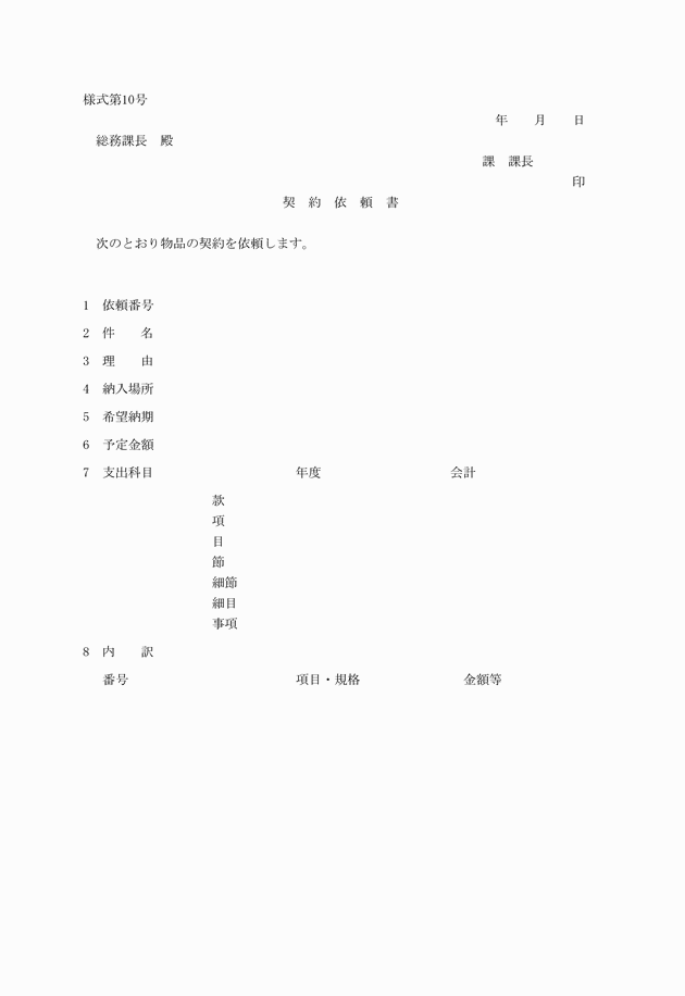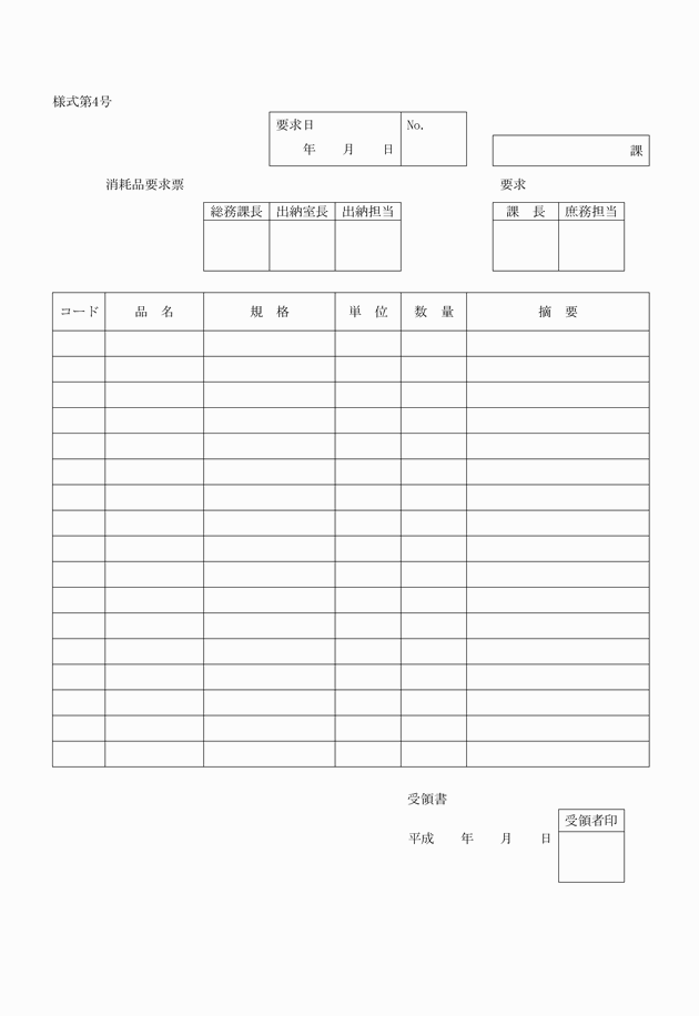第10条 物品管理者は、会計管理者の保管する物品を使用する必要があるときは、物品出納票により会計管理者に払出しの要求をしなければならない。