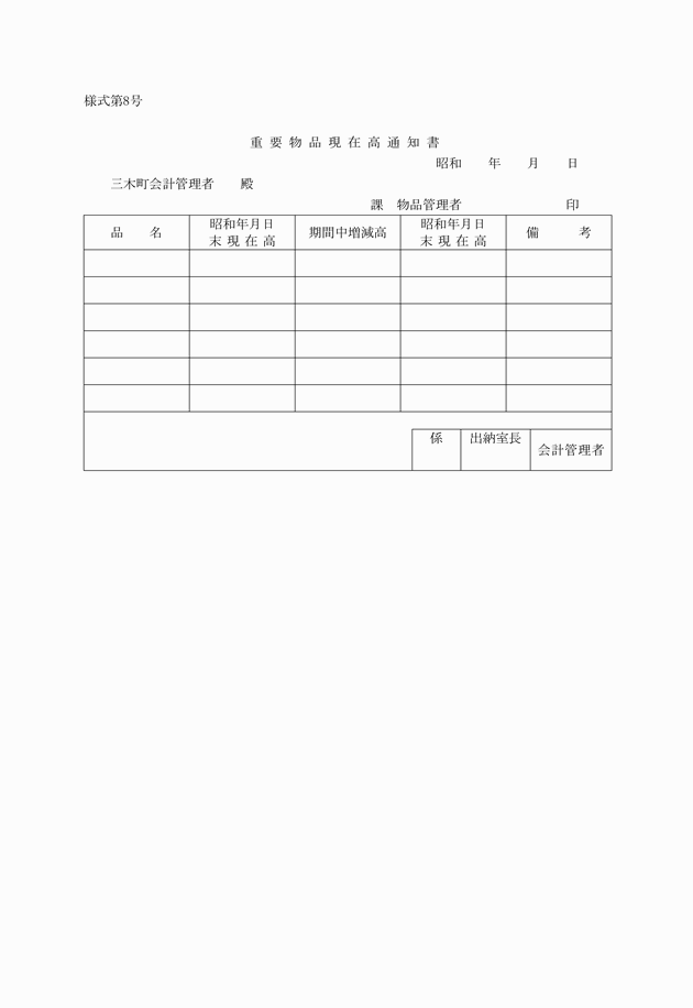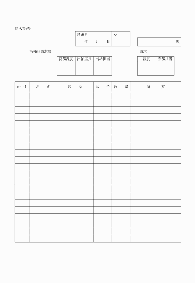 第9条 物品管理者は、物品を購入、借入れ寄附交換等により取得したときは、物品出納票(様式第3号)により直ちに当該物品を会計管理者に引き渡さなければならない。