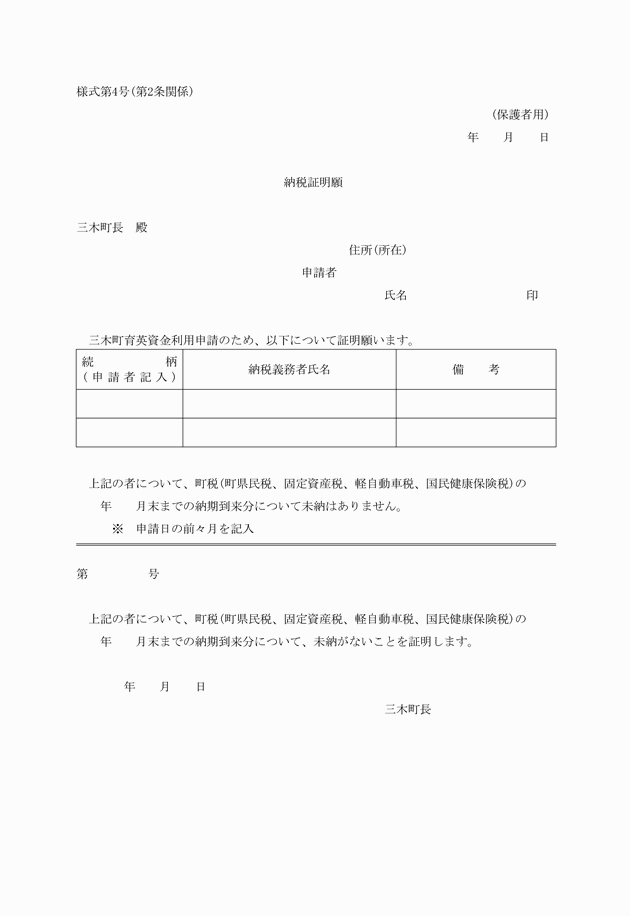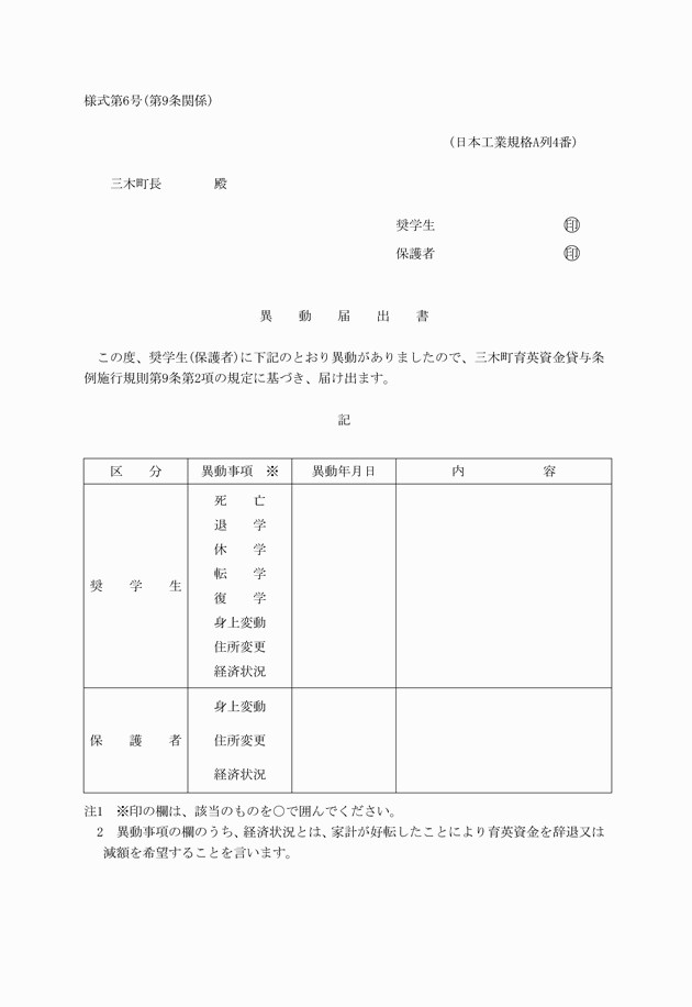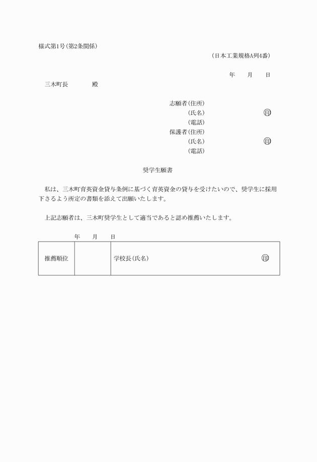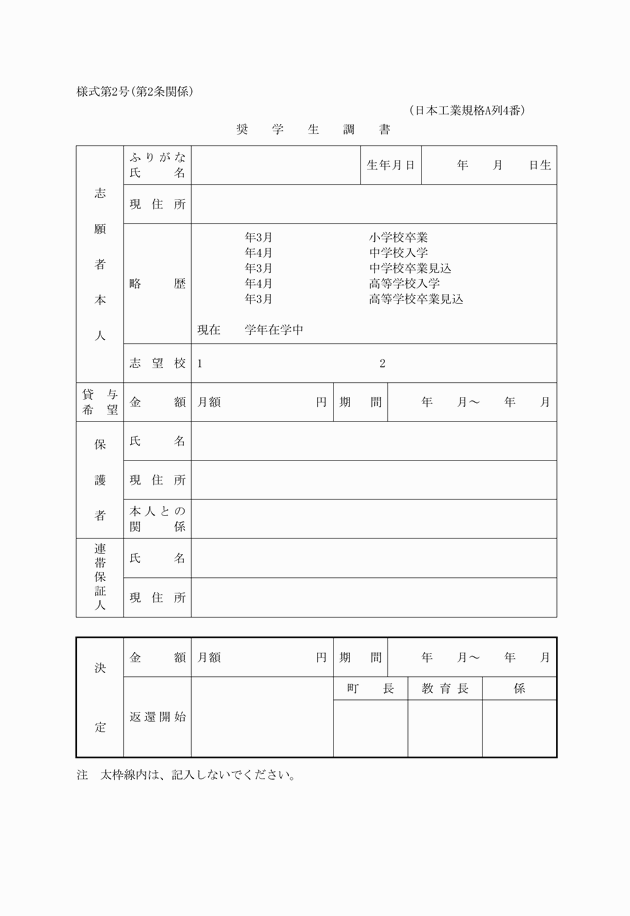 第2条 育英資金貸与志願者は、次の書類を3月末日までに在学学校長を経て、町長に提出しなければならない。