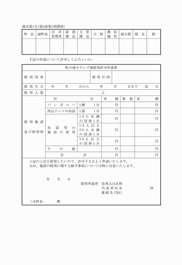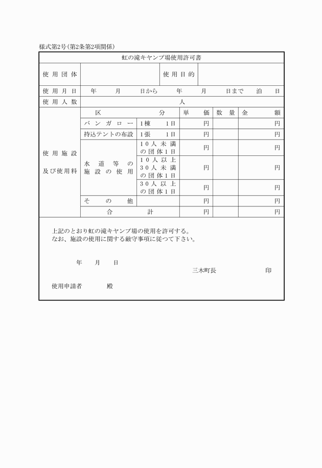 第1条 この規則は、虹の滝キヤンプ場の設置、管理等に関する条例(昭和54年三木町条例第17号。以下「条例」という。)第12条の規定に基づき、虹の滝キヤンプ場(以下「キヤンプ場」という。)の管理等について必要な事項を定めることを目的とする。