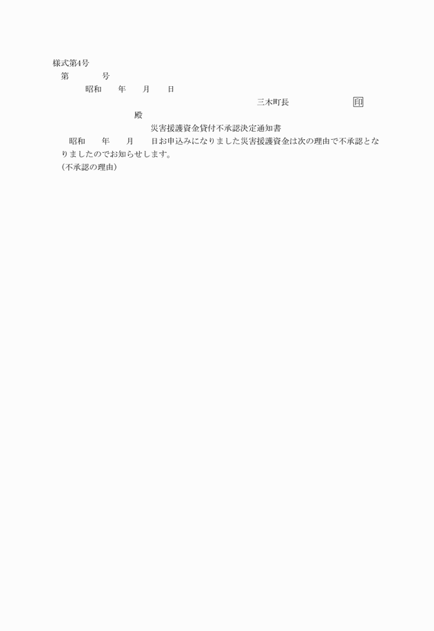 4 町長は、償還の免除を認めない旨を決定したときは、償還免除不承認通知書(別紙様式第15号)を、当該償還免除申請者に交付するものとする。