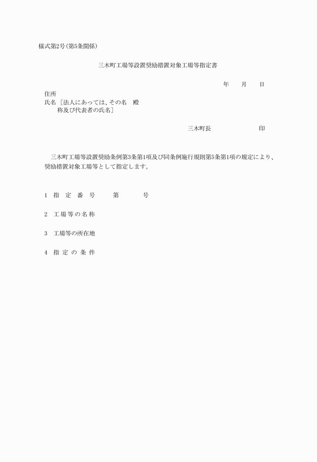 2 町長は、条件を付すときは、前項の指定書にその条件を記載するものとする。