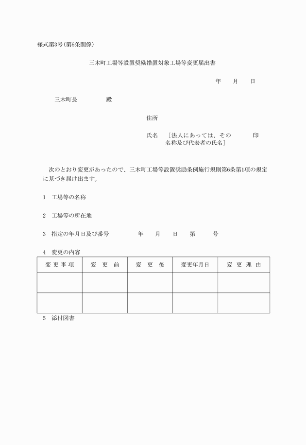 2 前項の変更届出書には、町長が必要と認める図書を添付しなければならない。
