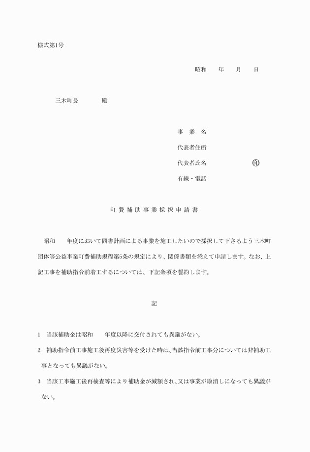 2 特に急施を要する工事については、あらかじめ町長の承認を受けた場合に限り、補助金交付以前においても工事に着手する事ができる。