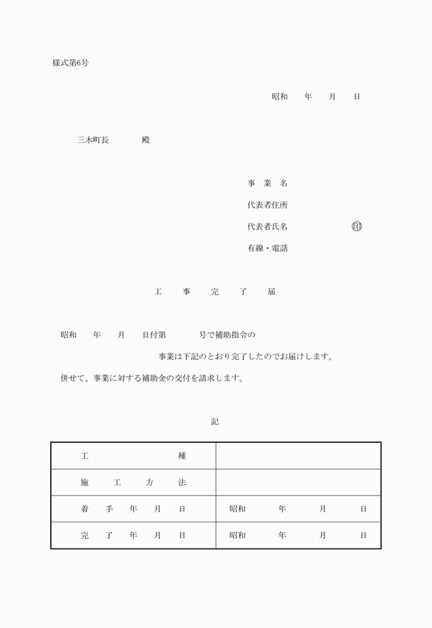 第13条 事業者は、工事が完了したときは速に工事完了届(様式第6号)を町長に提出して、竣工検査を受けなければならない。