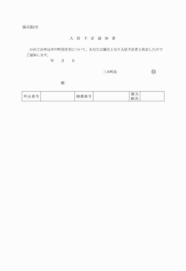 第3条 町長は、条例第7条の規定に基づいて入居決定者の選考方法を定めたときは、告示する。