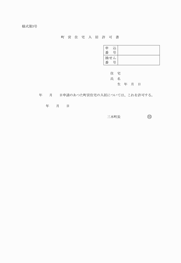 ○三木町営住宅設置及び管理条例施行規則