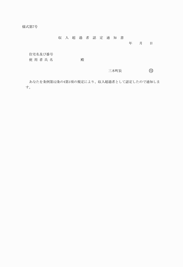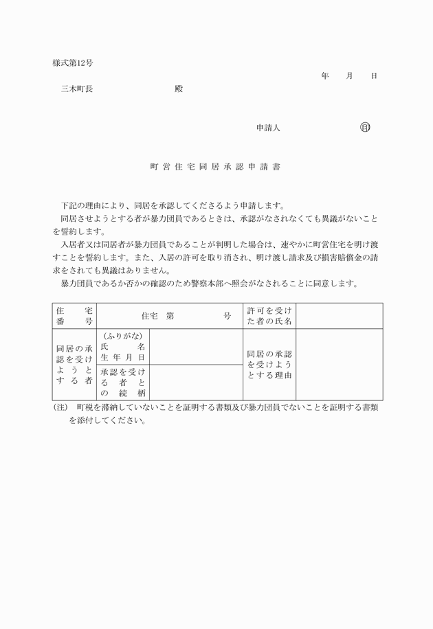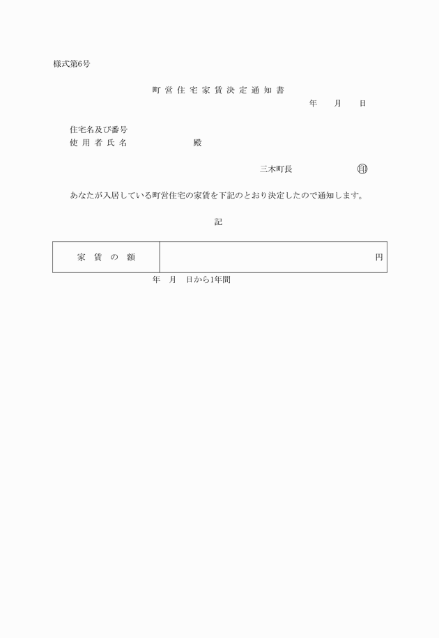 (6) 前各号に掲げるもののほか、入居資格の判定上町長が必要と認める書類