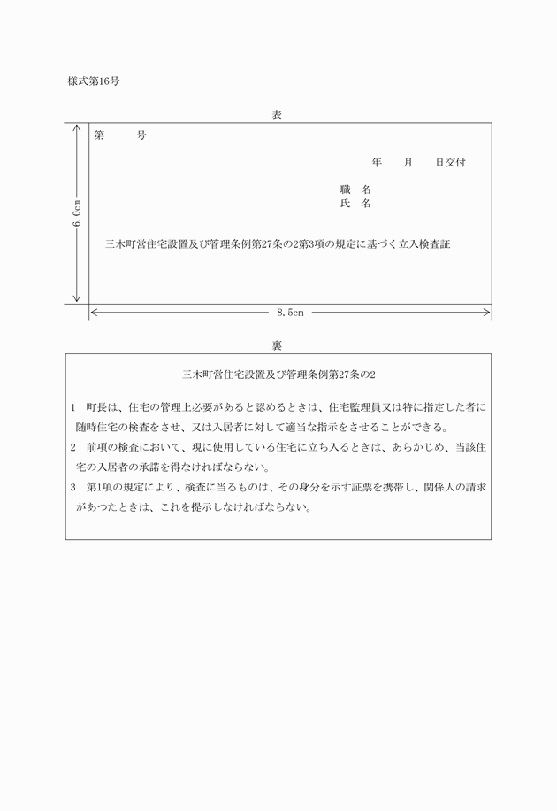 第21条 条例第27条の2第3項に規定する証票は、様式第16号による。