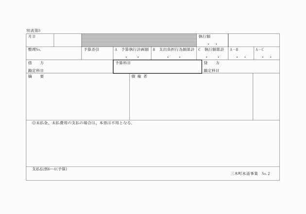 第5条 水道事業に係る取引については、その取引の発生の都度、証拠となるべき書類に基づいて会計伝票を発行するものとする。