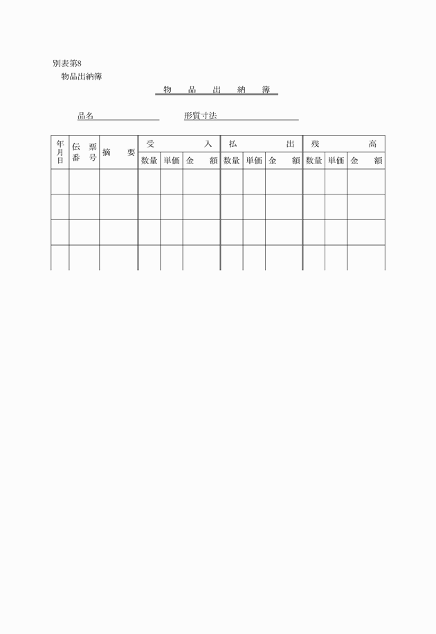 見出紙 | 〃 | スタンプインク | 〃 | 収入伝票 | 枚 |