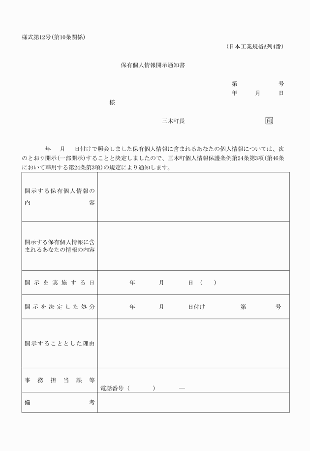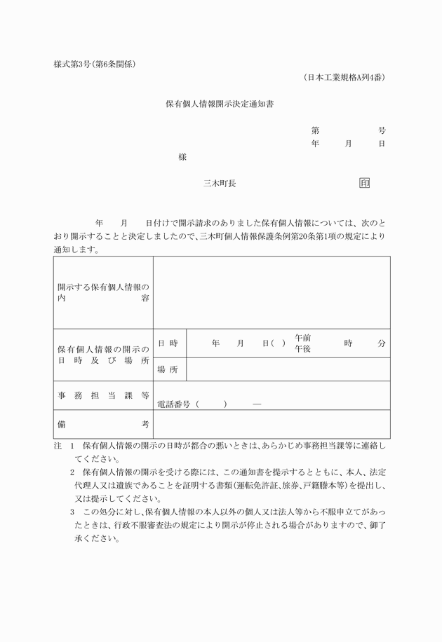 (1) 保有個人情報の全部を開示する旨の決定 保有個人情報開示決定通知書(様式第3号)