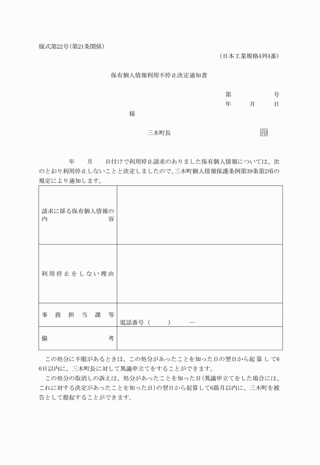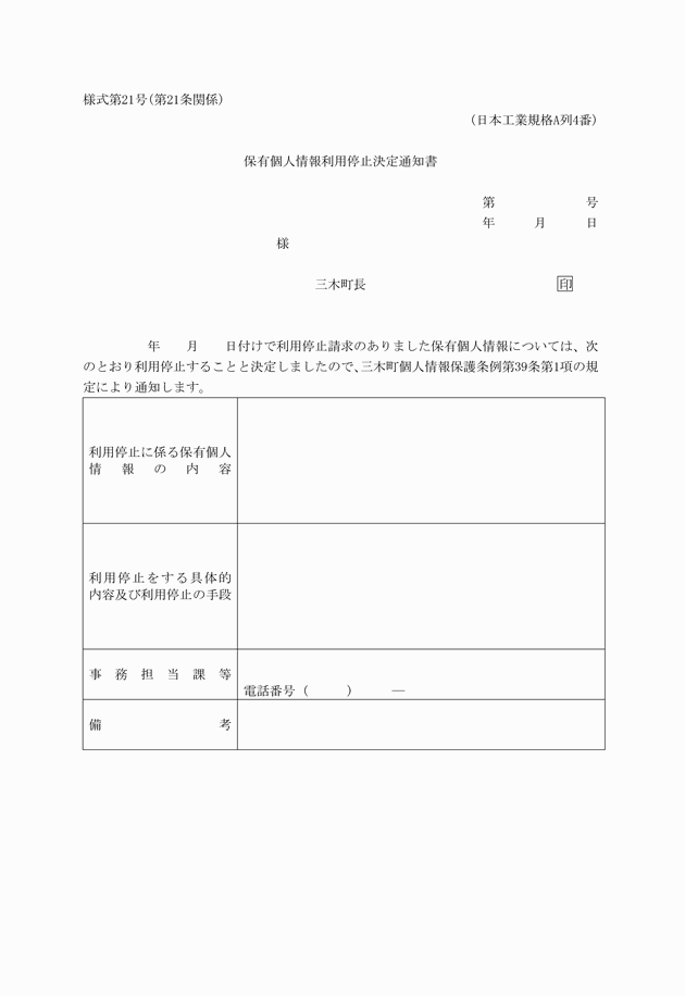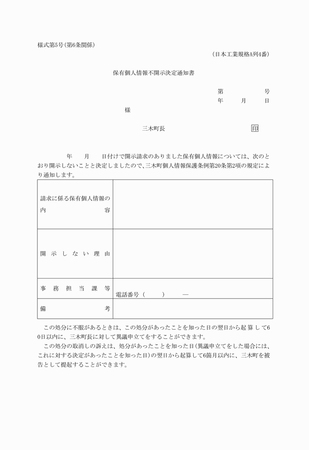 (2) 保有個人情報の一部を開示する旨の決定 保有個人情報一部開示決定通知書(様式第4号)
