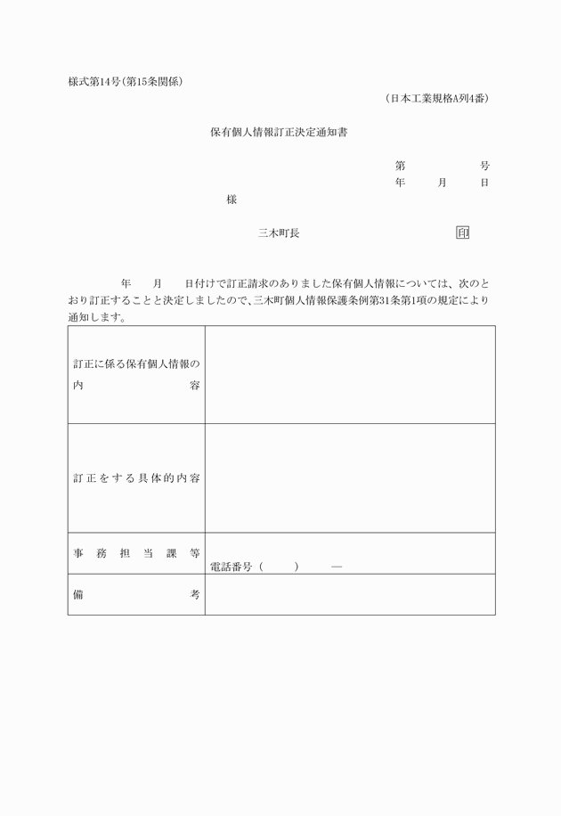 第1条 この規則は、三木町個人情報保護条例(平成17年三木町条例第3号。以下「条例」という。)の施行に関し必要な事項を定めるものとする。