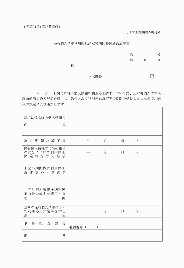 第24条 条例第52条の規定による公表は、個人情報取扱事務の登録件数、開示請求等の件数その他必要な事項を、町広報その他の方法で行うものとする。