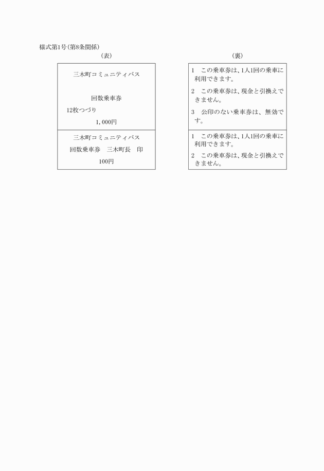 第8条 回数乗車券(様式第1号)は、町役場、同各出張所及びコミュニティバス車内その他町長が定めた場所で販売する。