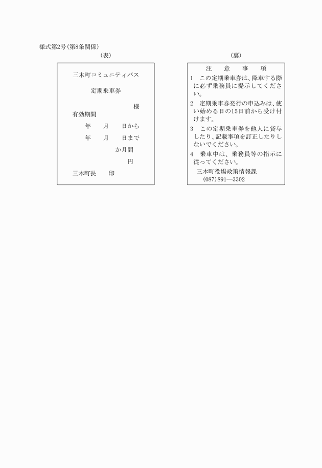3 定期乗車券(様式第2号)は、町役場で販売する。