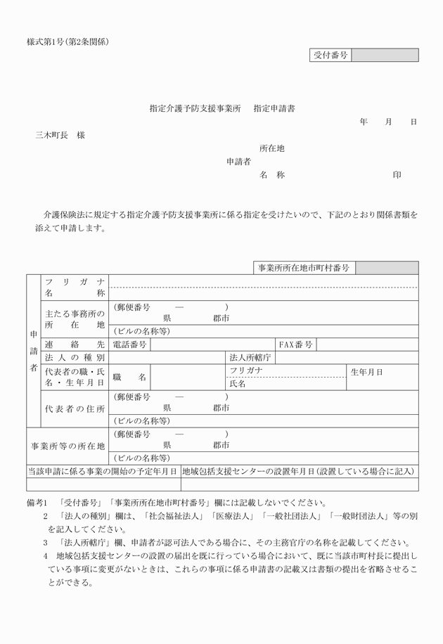 第2条 三木町長は、この規則の施行日前においても、指定介護予防支援事業所の指定に関し必要な手続を行うことができる。