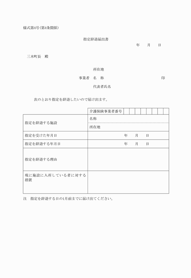 第4条 法第78条の8の規定による指定の辞退は、様式第4号による指定辞退届出書により行うものとする。
