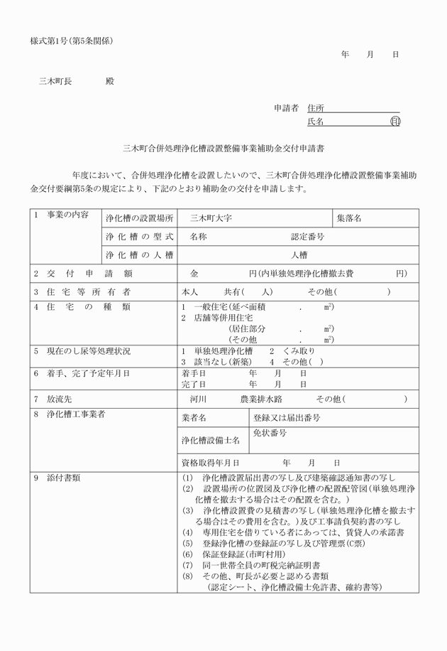 ○三木町合併処理浄化槽設置整備事業補助金交付要綱