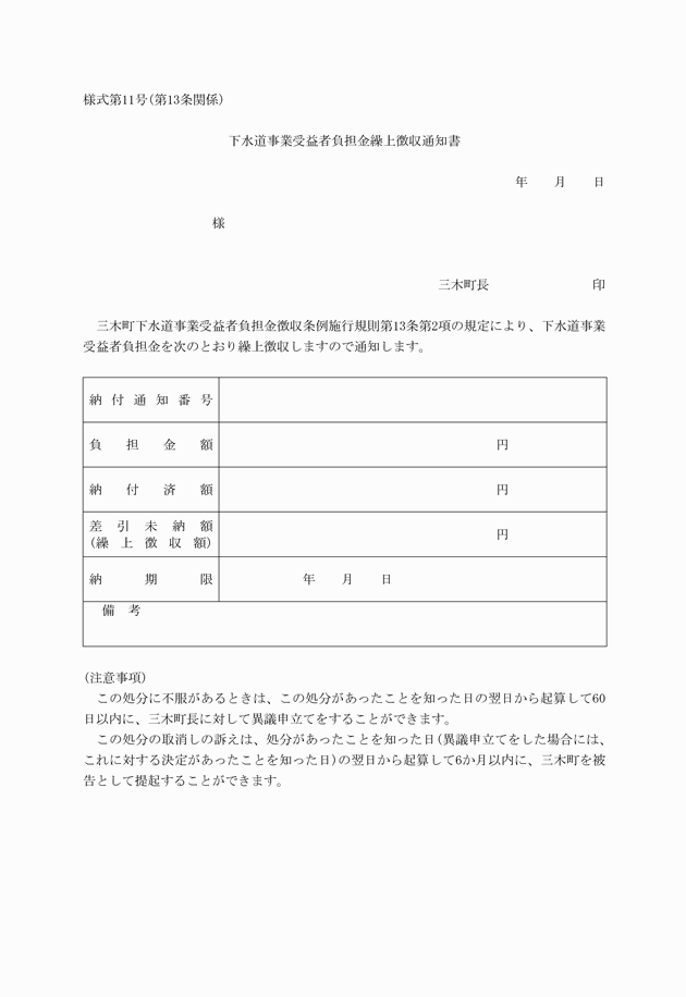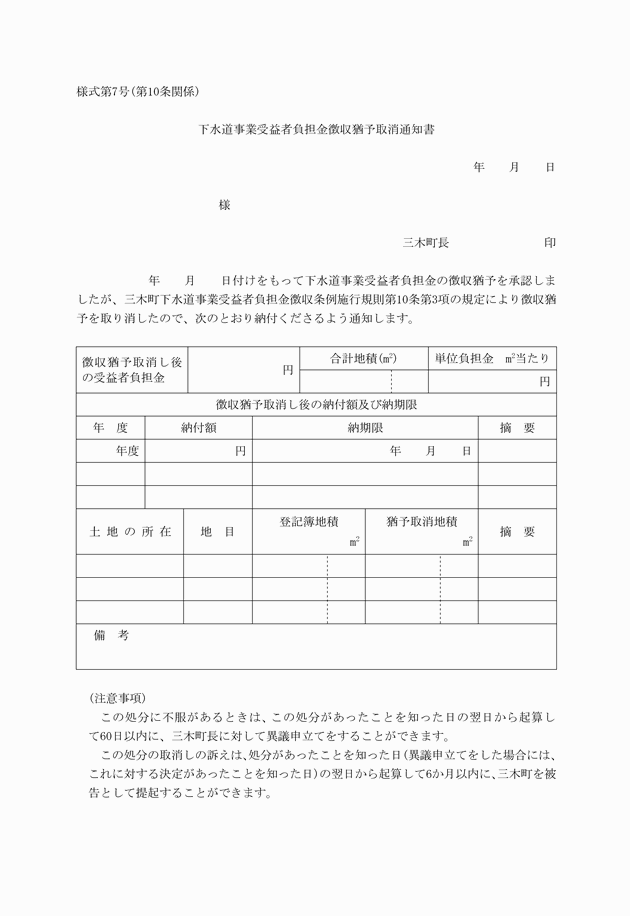 ○三木町下水道事業受益者負担金徴収条例施行規則