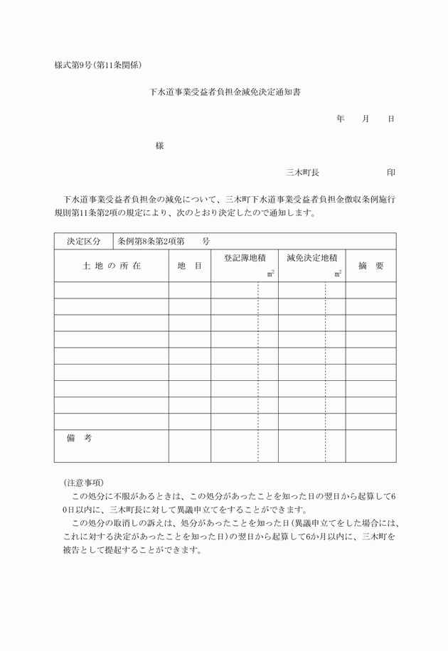 第1条 この規則は、三木町下水道事業受益者負担金徴収条例(平成18年三木町条例第19号。以下「条例」という。)の施行に関し必要な事項を定めるものとする。