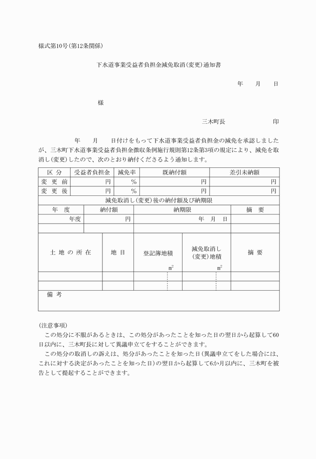 第12条 受益者は、前条の規定により負担金の減免を受けた後、その理由が消滅したとき、又はその理由に変更が生じたときは、遅滞なくその旨を町長に届け出なければならない。