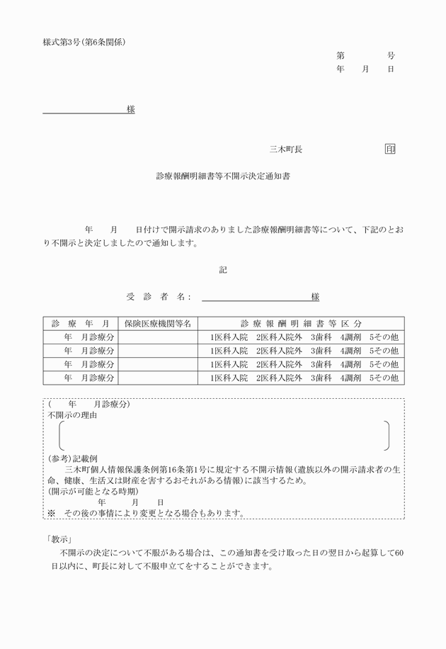 3 町長は、診療報酬明細書等のうち調剤報酬明細書について開示することに決定したときは保険薬局に通知するものとする。