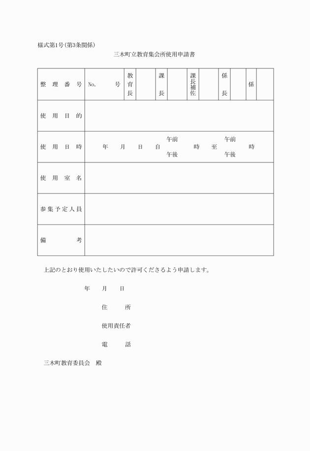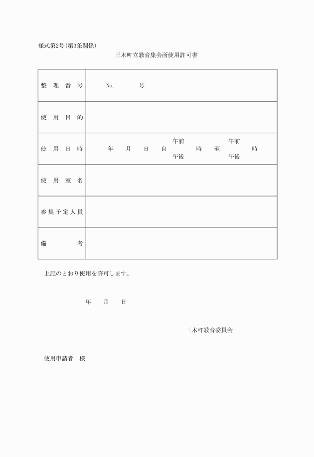 第2条 教育集会所は学校及び社会教育の目的達成に必要な集会、その他町民の諸集会に使用する。