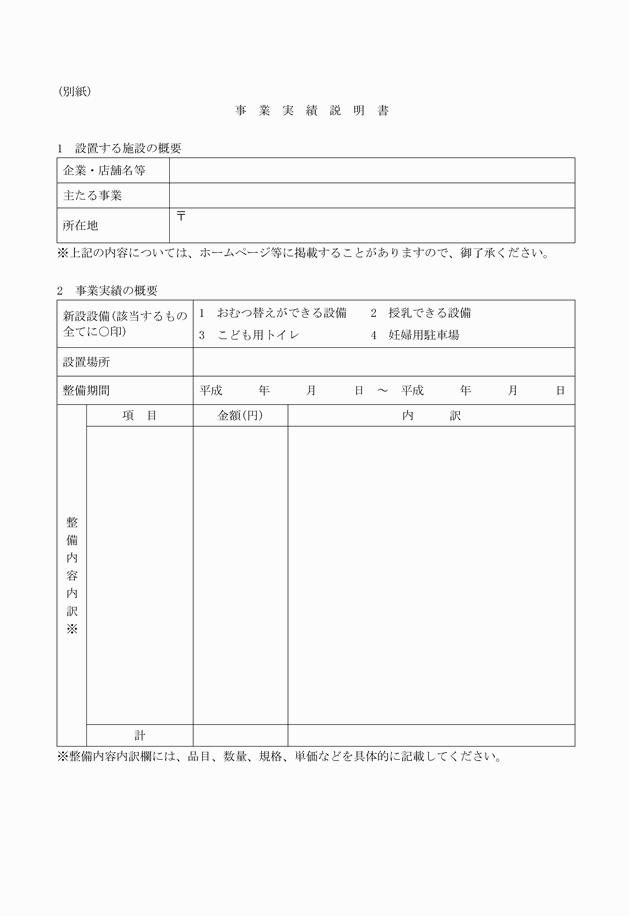 2 前項に規定する実績報告書には、別紙事業実績説明書のほか、次に掲げる事項を記載した書類を添付しなければならない。