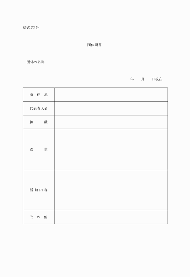 ウ 団体調書(様式第3号)