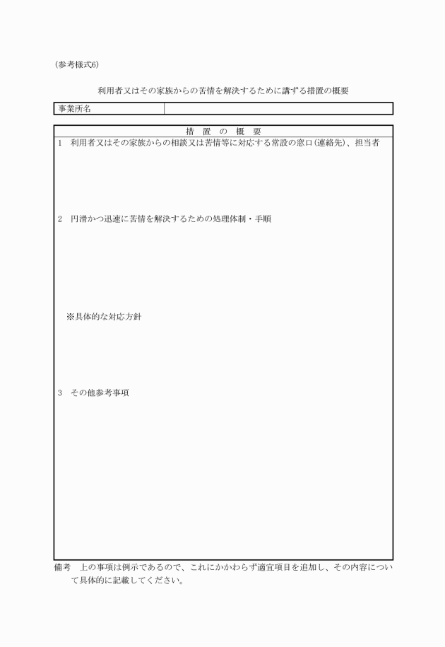(参考様式6)利用者又はその家族からの苦情を解決するために講ずる措置の概要