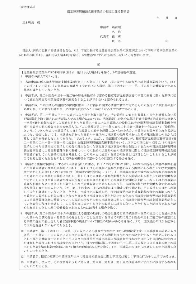 (参考様式9)指定障害児相談支援事業者の指定に係る誓約書
