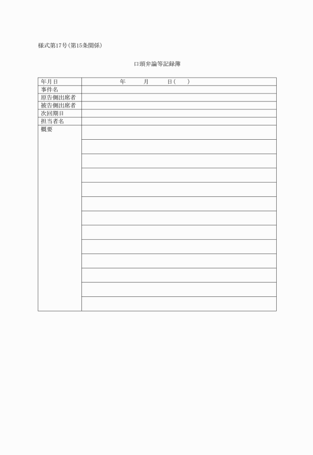 第15条 町営住宅明渡し等請求訴訟を提起した場合において、口頭弁論等が開催された場合は、口頭弁論等記録簿(様式第17号)を作成し、町長に報告する。